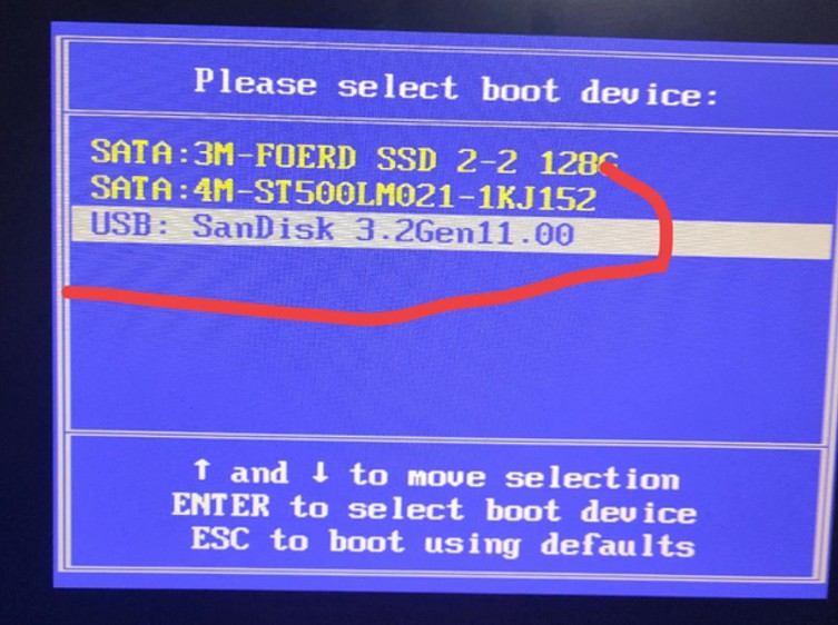 b.u盘插入电脑,重启后需要快速按下快捷键,建议重复按多几次。